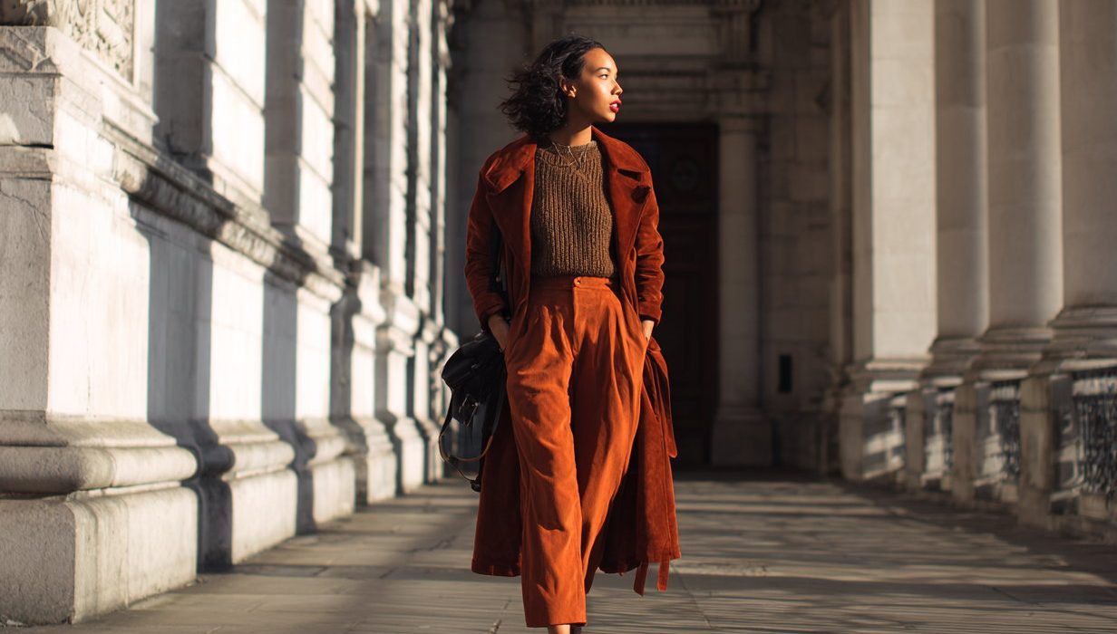 1. Suede Coat + Lightweight Knit + Tailored Trousers