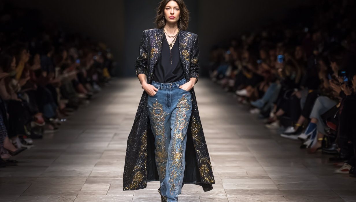 A scatter of crystals catching the light, threadwork tracing the seams, metallic studs or appliqué turning something familiar into something that holds attention on your embellished jeans. The effect is simple but strategic. You could be wearing the most basic white T-shirt, and yet the outfit reads considered, even directional. Over the past few years, the way we think about getting dressed has changed. After seasons dominated by quiet luxury and pared-back minimalism, there’s a visible shift toward pieces that feel expressive again.