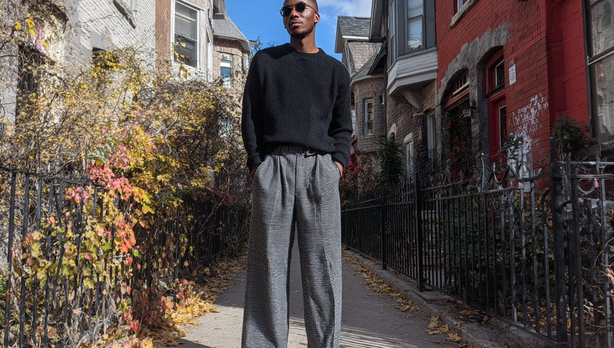 For those experimenting with relaxed-leg pants for the first time, casual looks are the easiest entry point. Begin with classic colours like navy, black, olive, or washed indigo. Fabrics like cotton twill, wool-blends, and denim offer structure while still keeping the silhouette fluid.