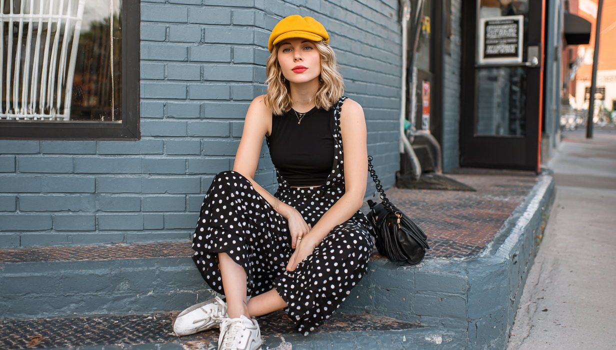 The polka-dot motif was very much in evidence on the catwalks of recent collections. On the capri, this print makes it easy to add a fashionable touch to the silhouette. Wear it, Hailey Bieber opted for a white piece with black polka dots. She finalizes her outfit with a dark top and heeled flip-flops.